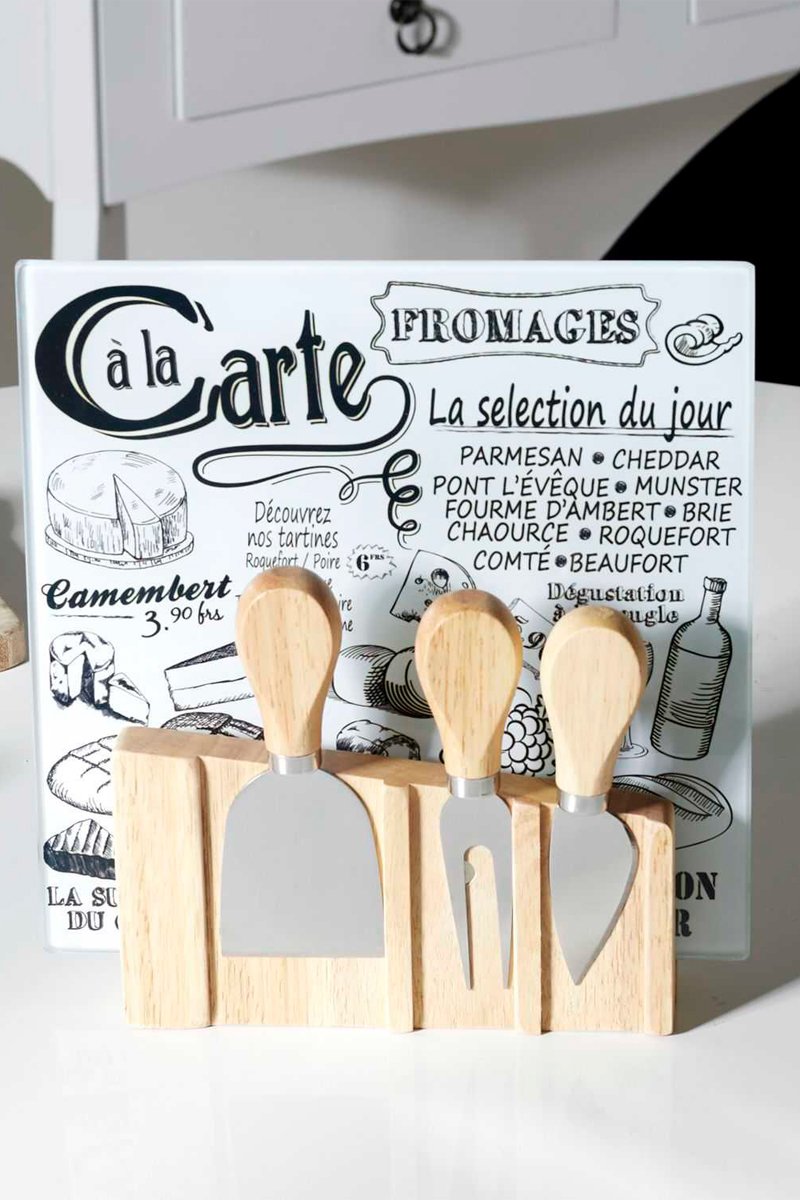 Plateau à fromage en bois et ustensiles aimantés - 21,1 x 22 x 4 cm