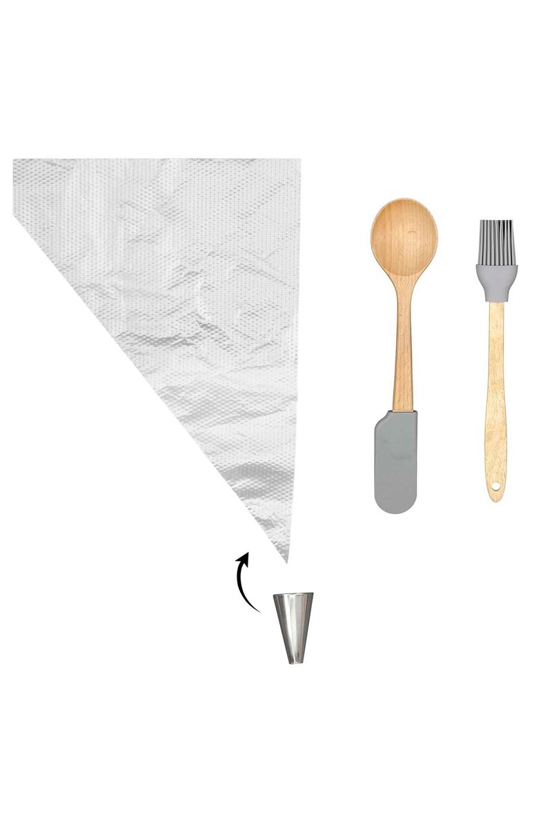 3 ustensiles en hêtre, silicone et acier inoxydable