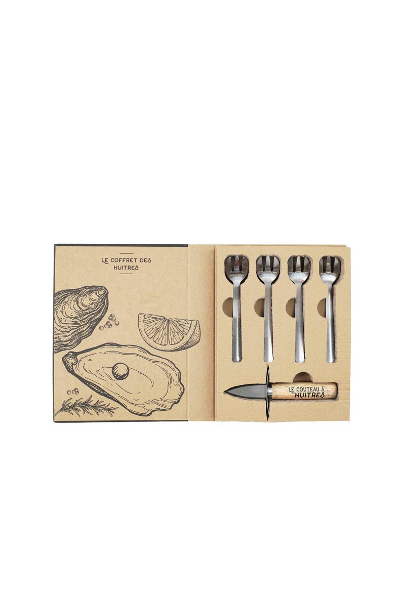 Coffret à huîtres en acier inoxydable comprenant :