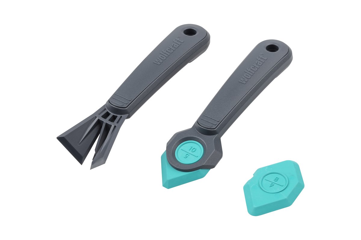 1 lisseur de joints à profil d’arête à 45°, utilisable des deux côtés : largeur 5 et 10 mm.
