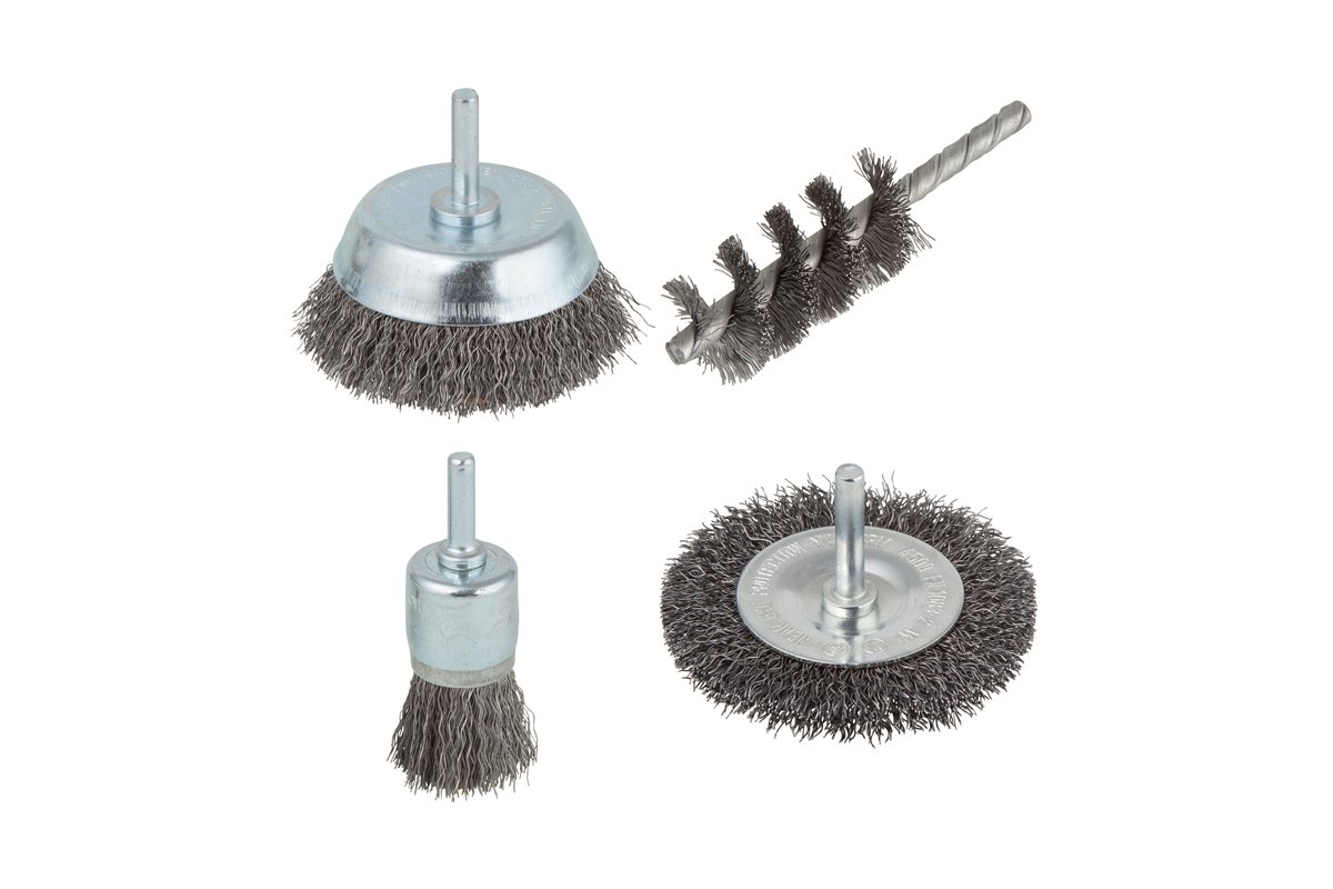 4 brosses pour perceuses avec queue ronde.