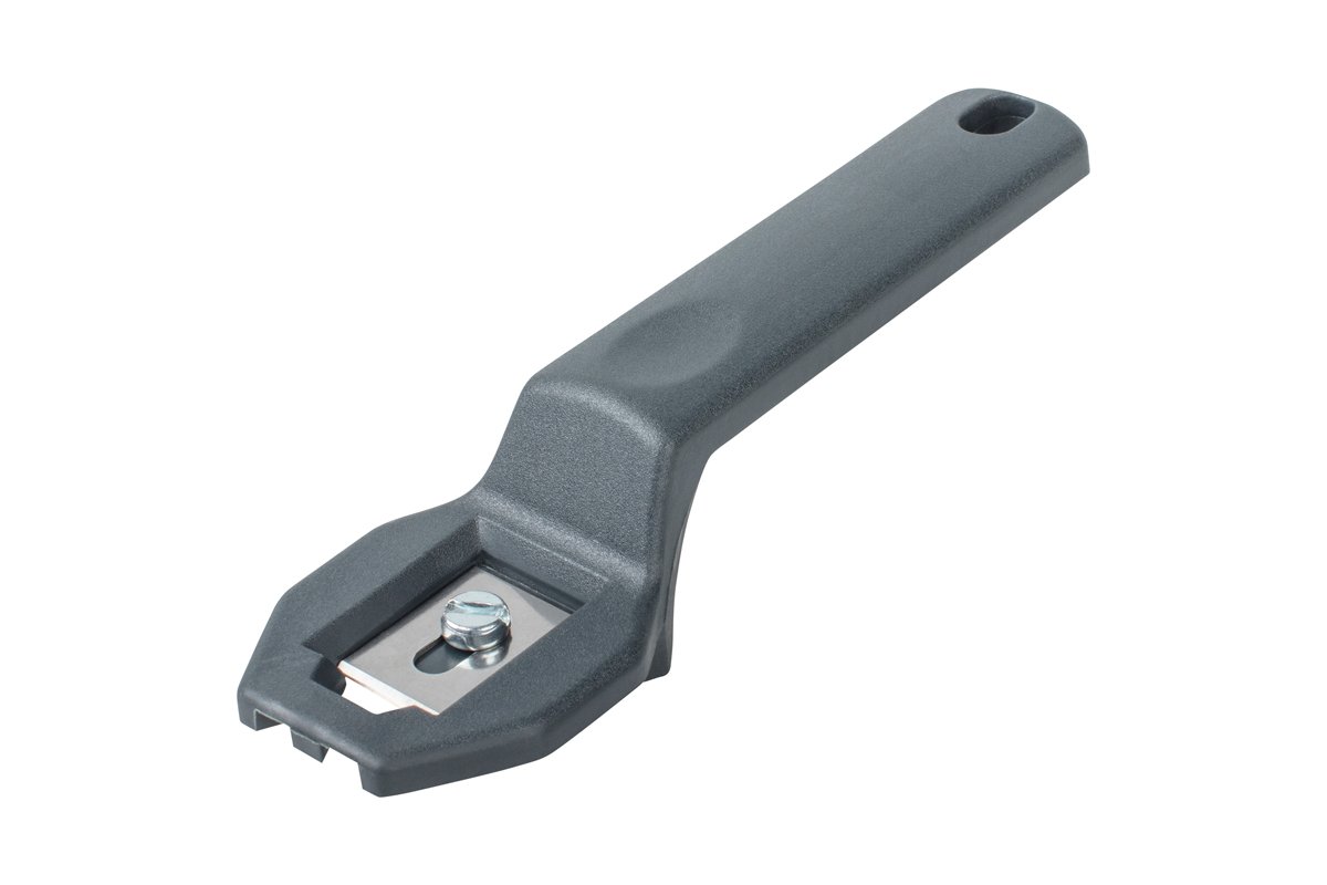 Une lame extra-coupante est verrouillée dans le guide en plastique, ce qui garantit des résultats exacts lors du positionnement et du guidage de l'araseur le long du bord.