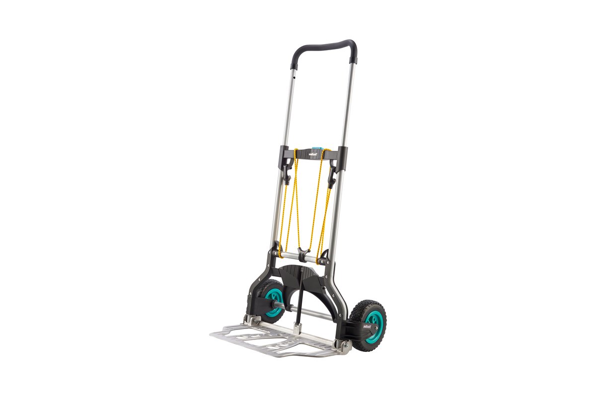 Pour un transport sans effort et ergonomique, la hauteur de la poignée ronde en caoutchouc est réglable jusqu'à 110 cm.