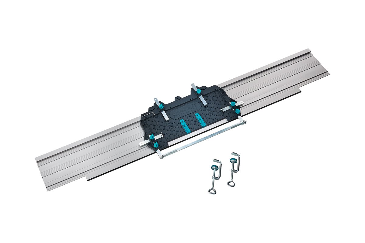 Le rail de guidage en deux parties convient non seulement aux scies circulaires à main fonctionnant sur secteur, mais aussi aux scies circulaires à main alimentées par batterie avec une petite platine.