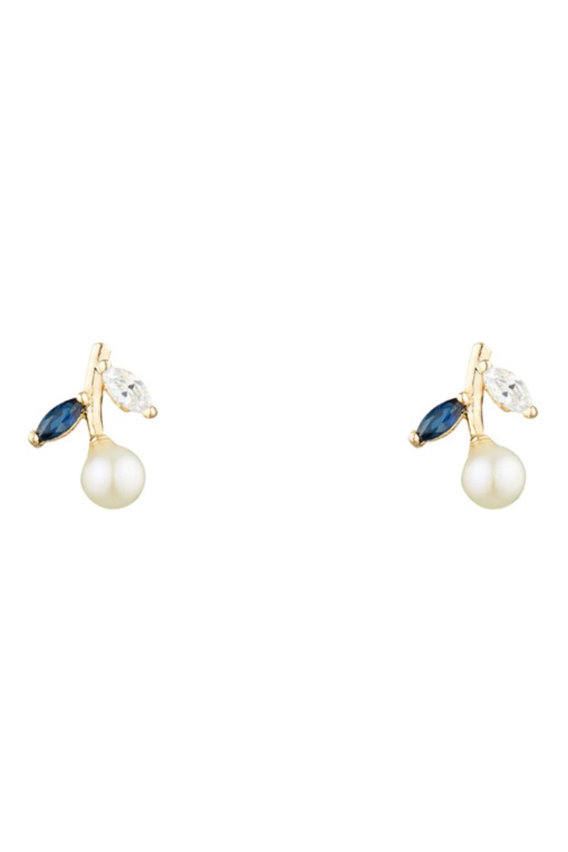 Puces en or jaune serties d'un zirconium, d'un saphir et d'une perle d'imitation.