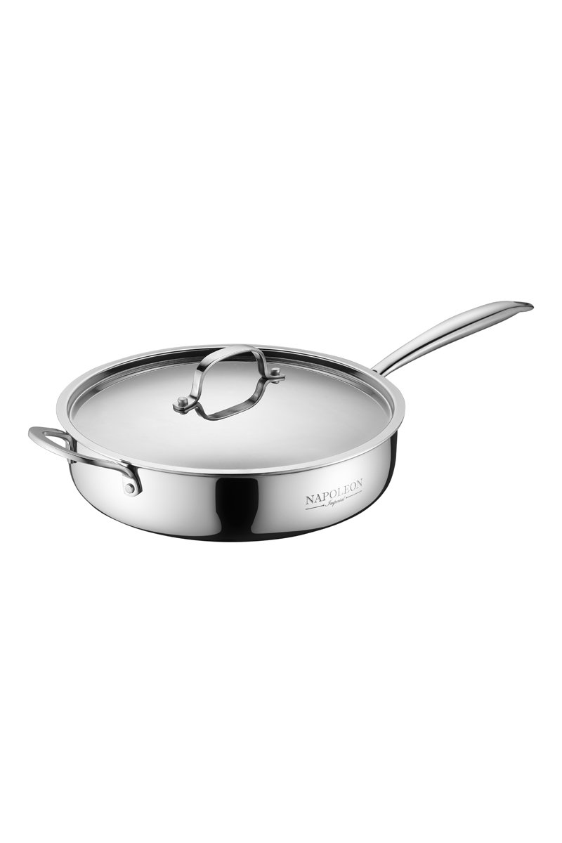 Sauteuse et couvercle en acier inoxydable.