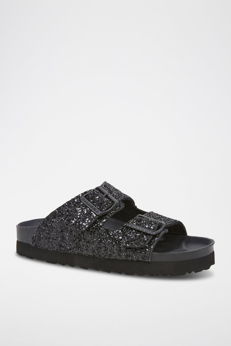 Mules pailletées.