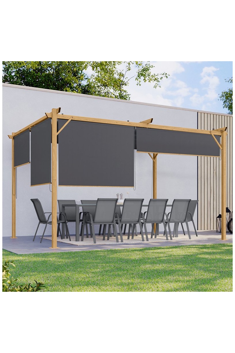 Pergola avec toit rétractable et 4 stores Marina - 395 x 220 x 290 cm