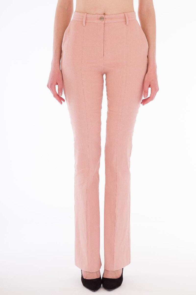 Pantalon en lin taille haute - Rose