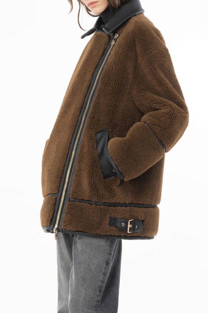 Manteau bi-matière - Marron