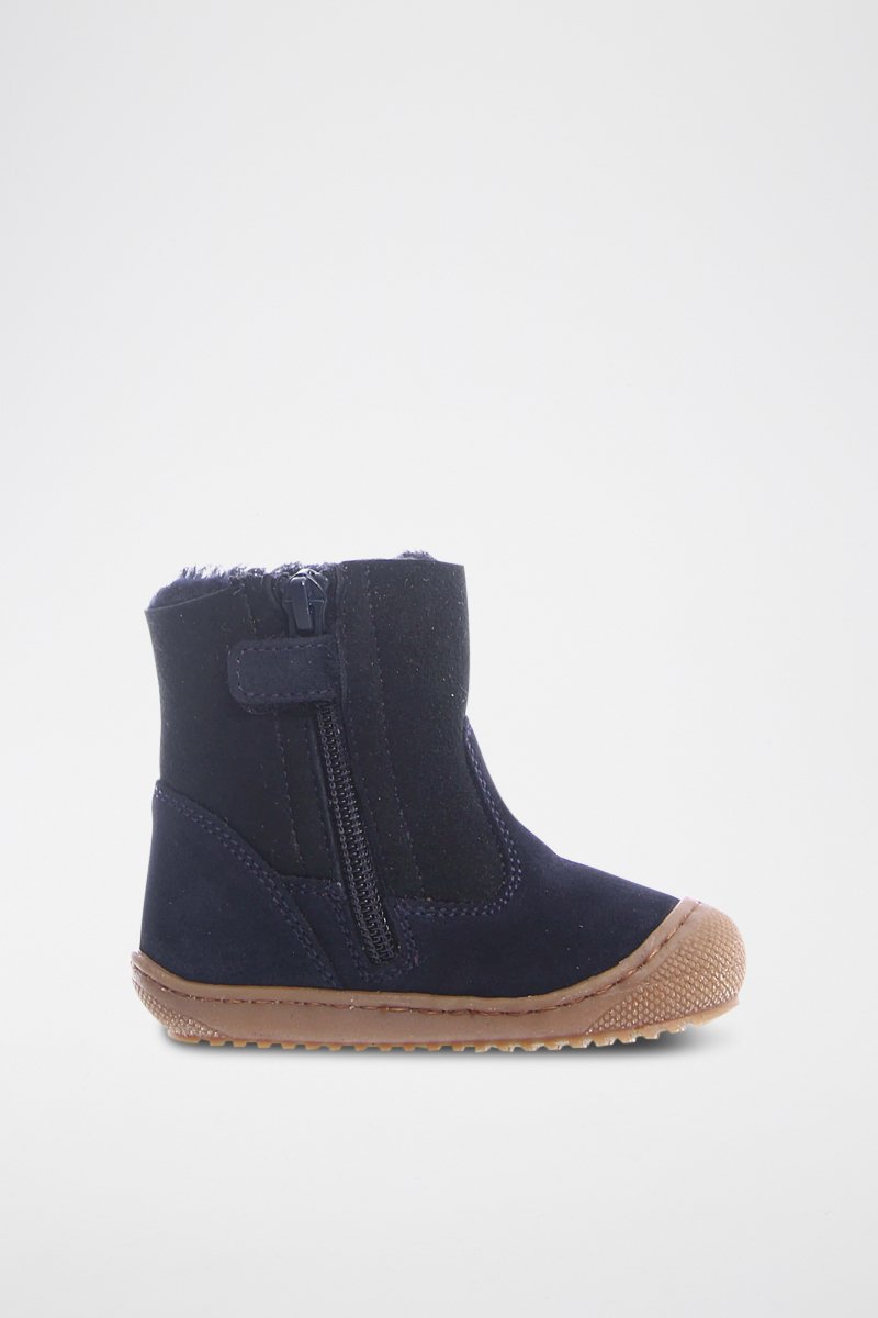 Bottines fourrées en cuir de mouton nubuck New Cotton - Bleu marine