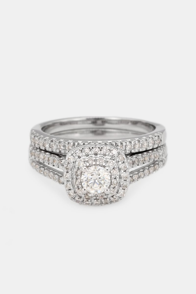 Alliance et solitaire Carré Passion - Or blanc, diamants et solitaire