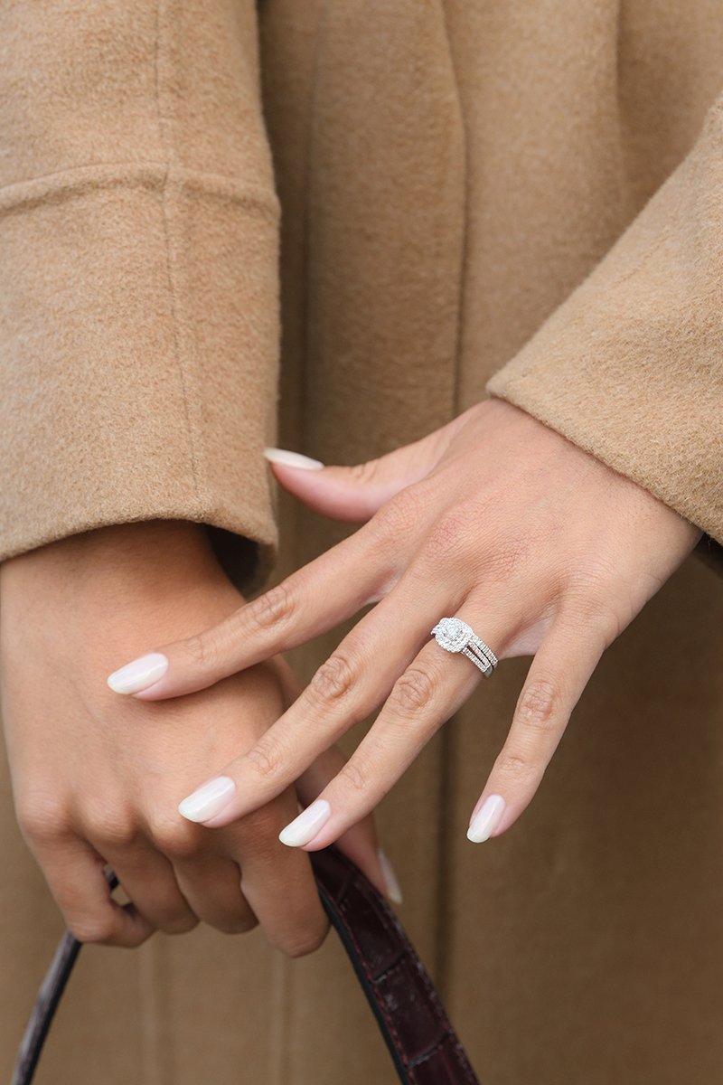 Alliance et solitaire Carré somptueux - Or blanc, diamants et solitaire
