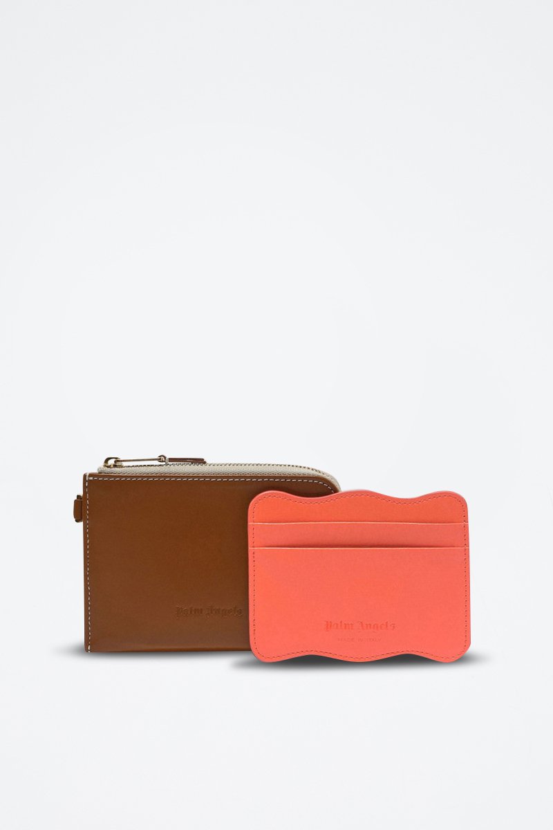 Pochette et porte-cartes en cuir de veau - Marron et orange