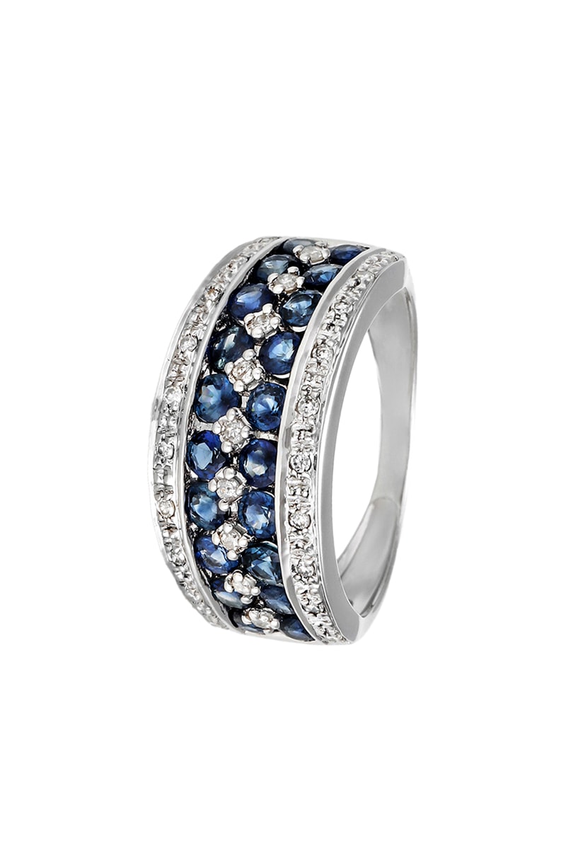 Bague en or blanc sertie de 20 saphirs et de 29 diamants.