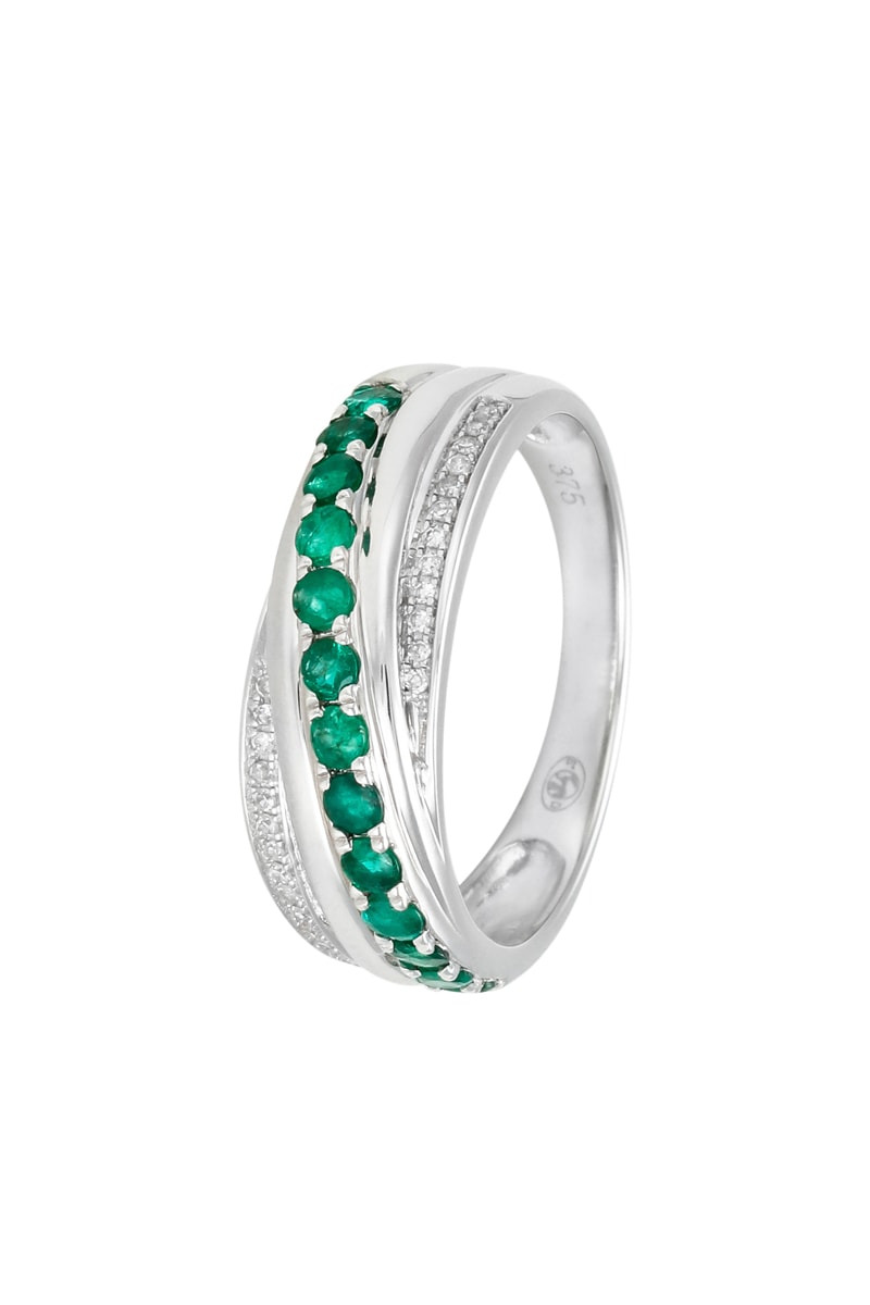 Matière : or blanc 375/1000, diamants 0,05 carat/27 et émeraudes 0,49 carat/13