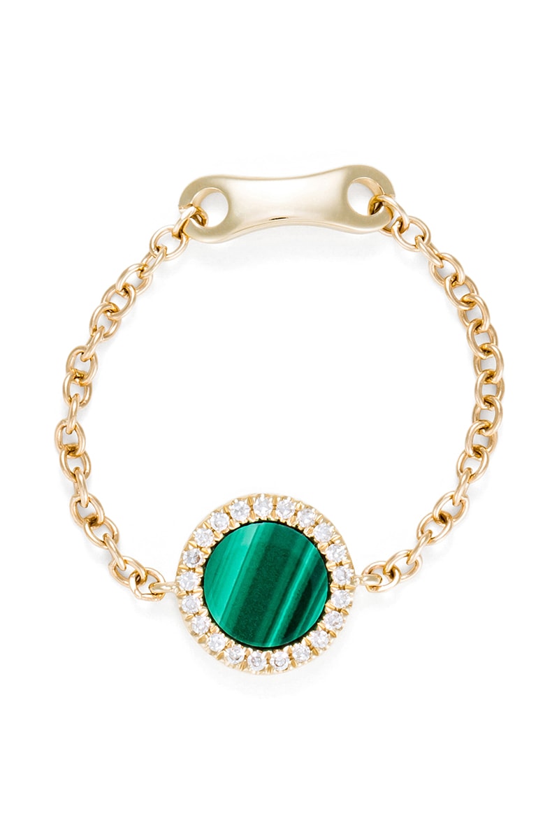 Bague en or jaune sertie d’un malachite et de 21 diamants.