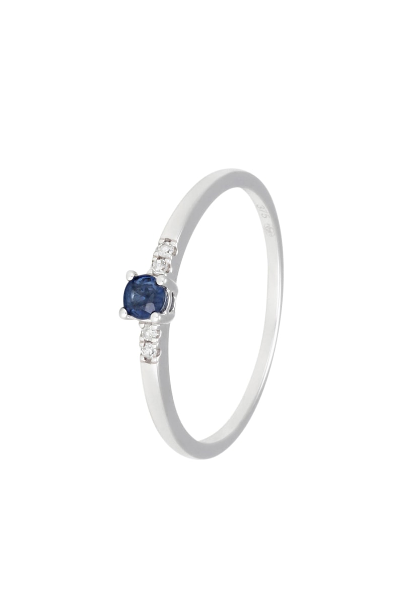 Matière : or blanc 375/1000, diamants 0,032 carat/4 et saphir 0,16 carat/1