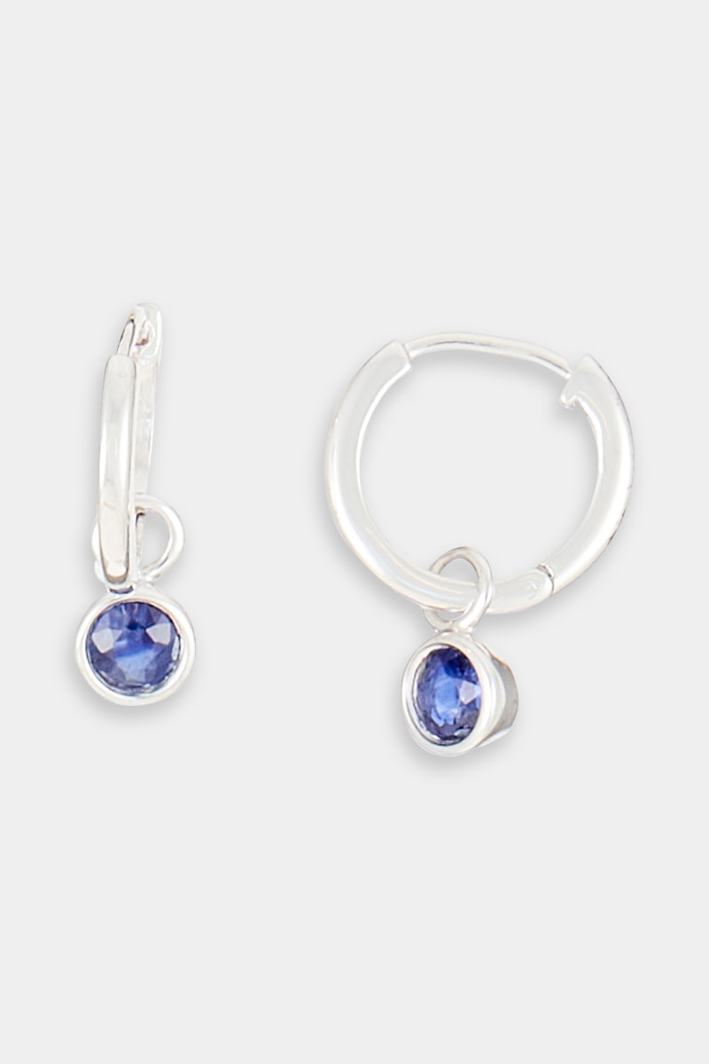 Créoles en or blanc serties d’un saphir.