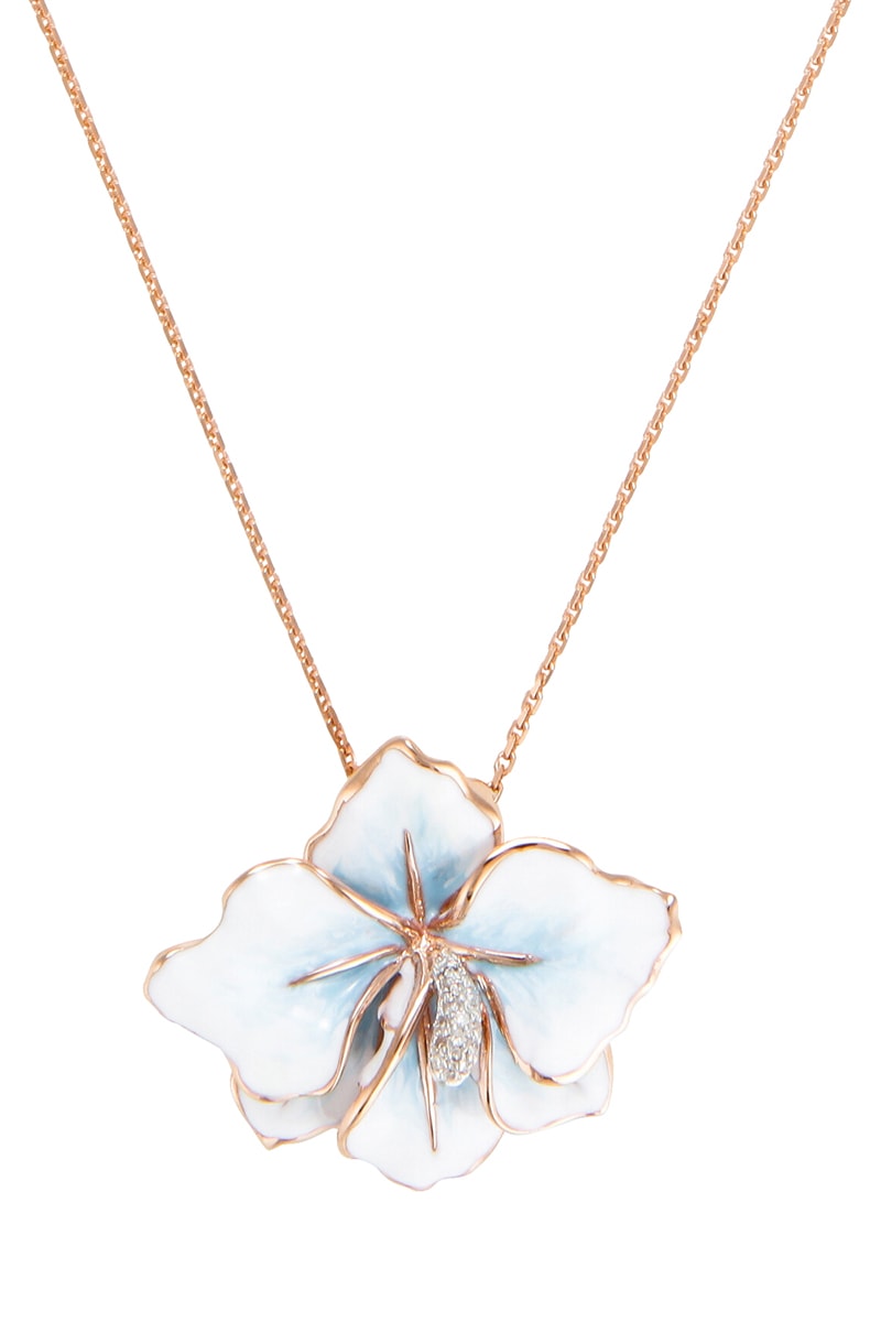 Pendentif en or rose serti de 14 diamants et d'émail.