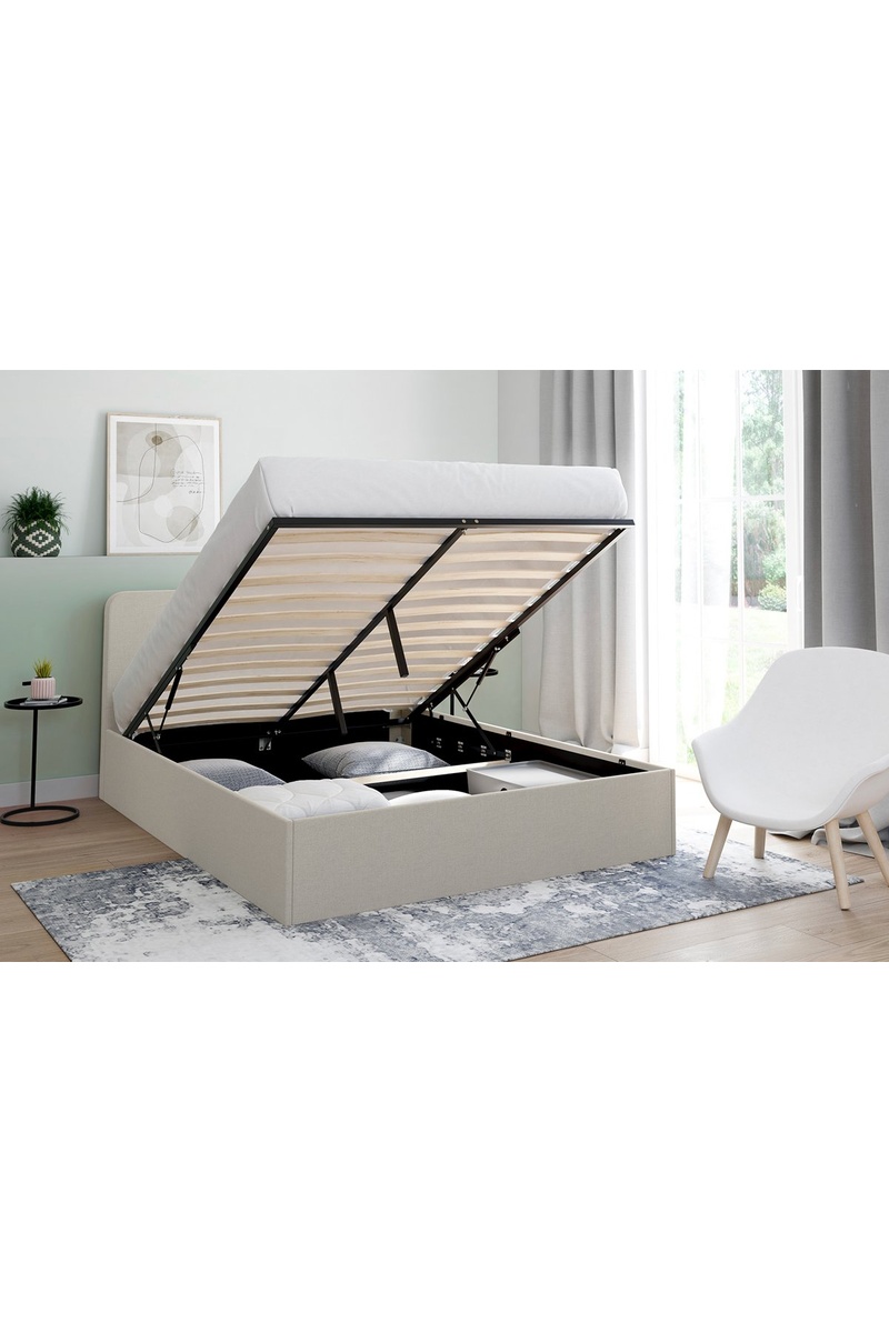 Lit-coffre avec sommier et tête de lit arrondie Louise - Couchage 140 x 190 cm