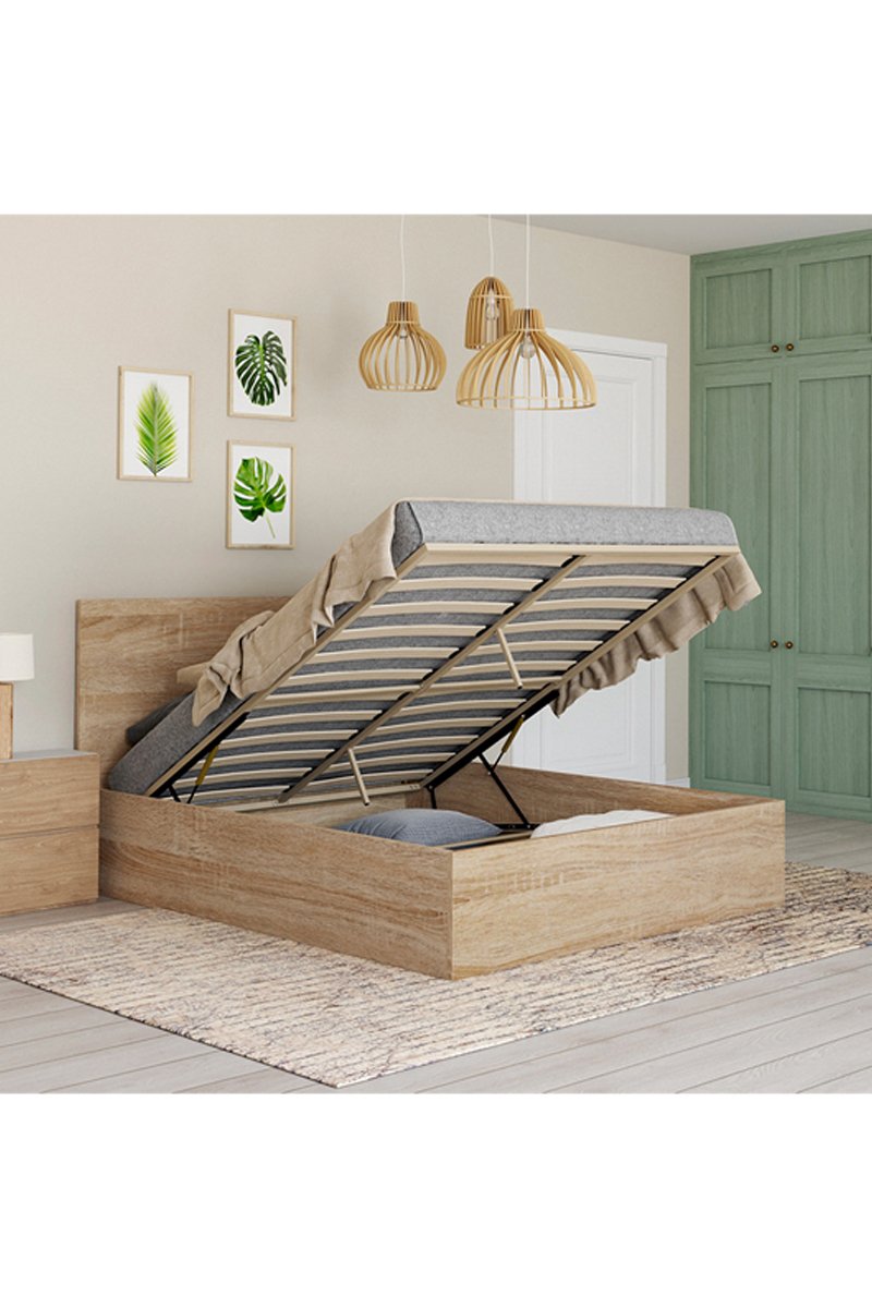Coffre de rangement sous le sommier.