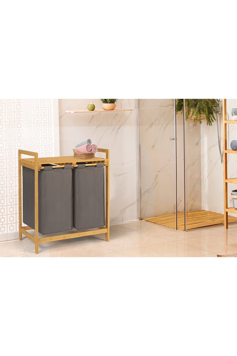 Bac à linge double en bambou.