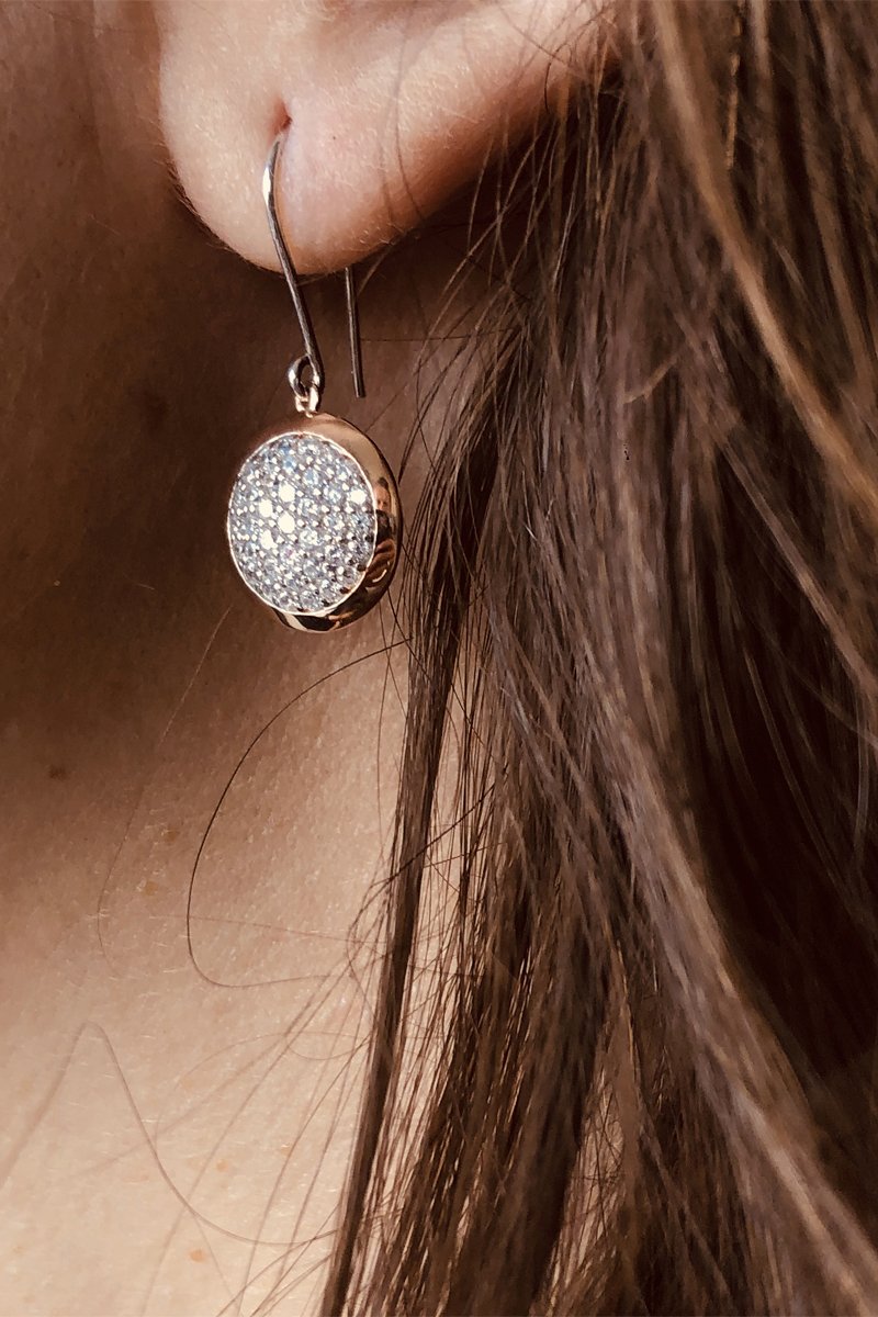 Boucles d'oreilles en argent et argent plaqué or rose serties de zirconiums.
