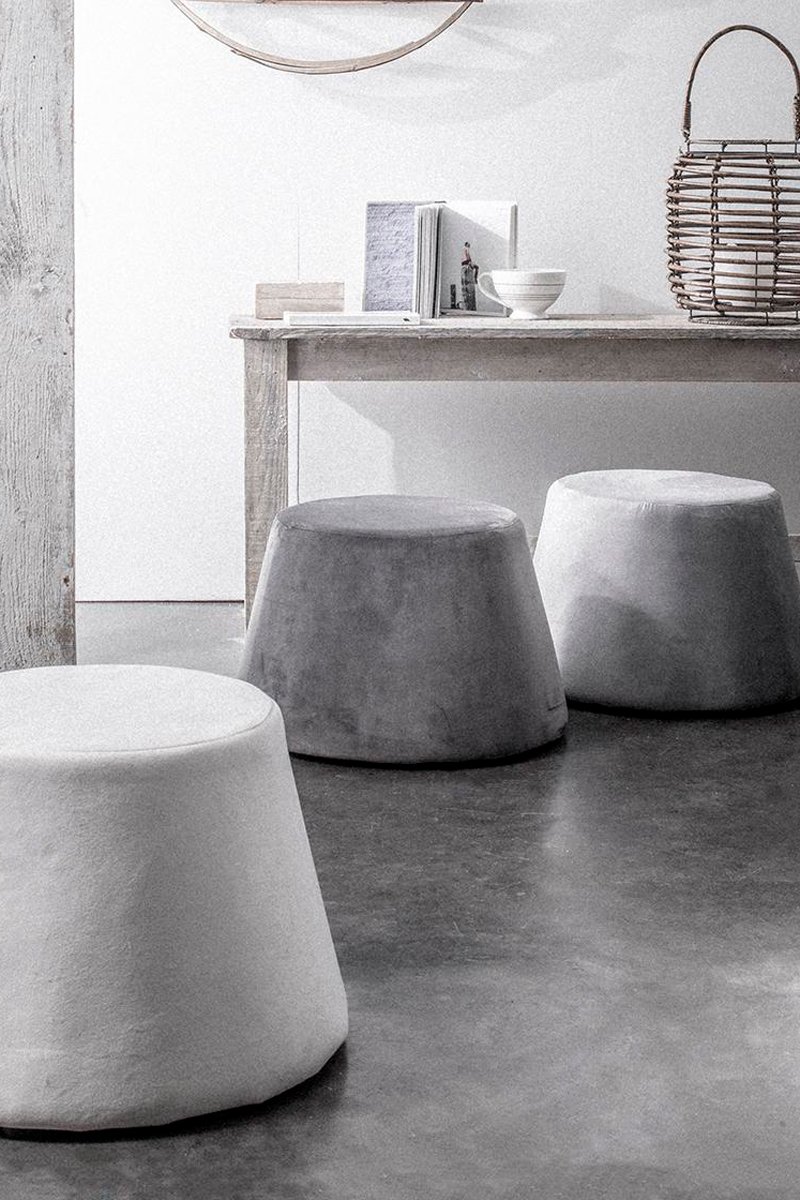 Pouf en velours Stockholm - Gris - 31,5 x 34 x 46,5 cm
