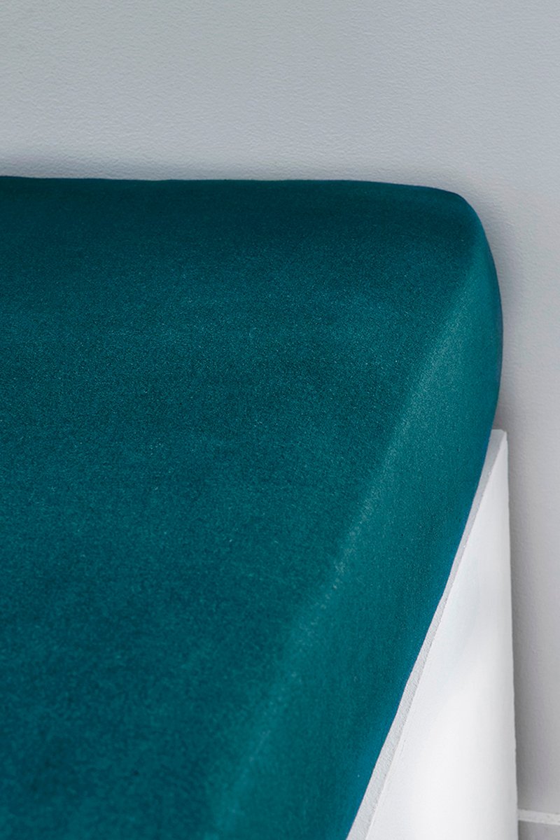 Drap-housse en coton 130 g/cm² Essential - Paon - Bonnet 25 cm