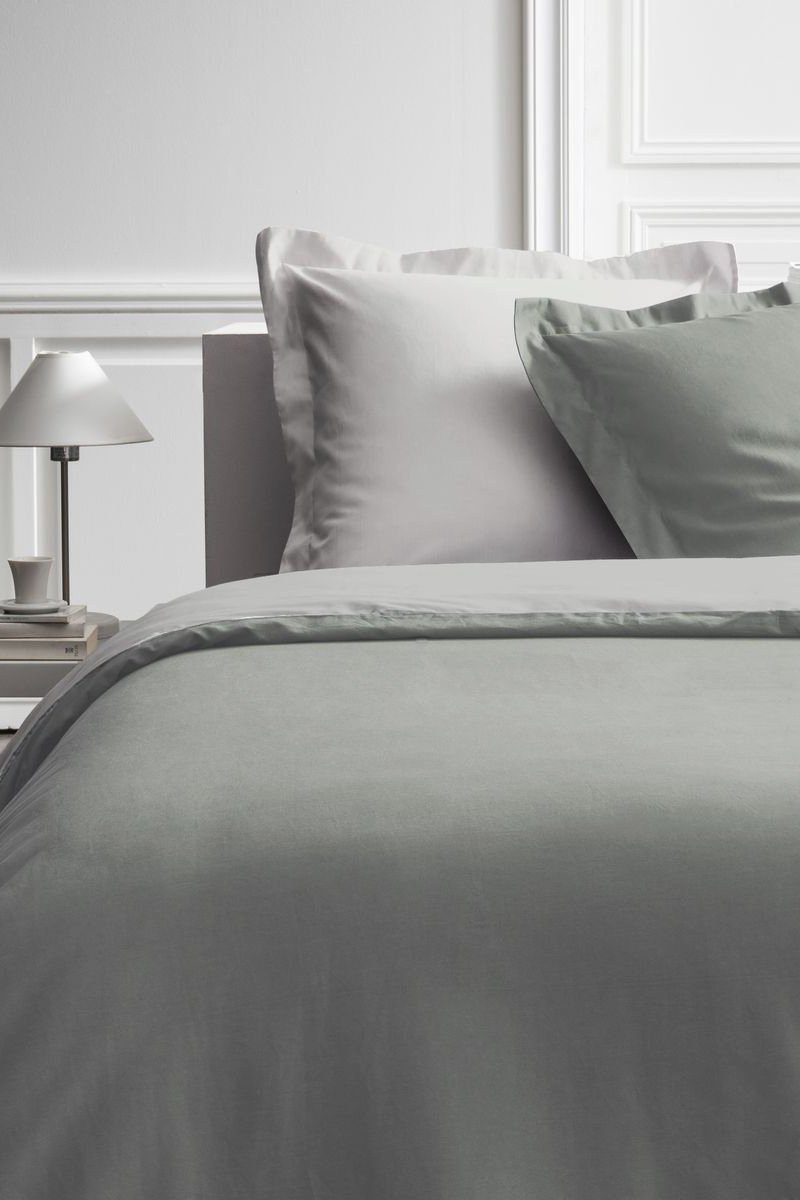 Parure de couette en percale de coton 78 fils/cm² Prestige - Sauge et beige
