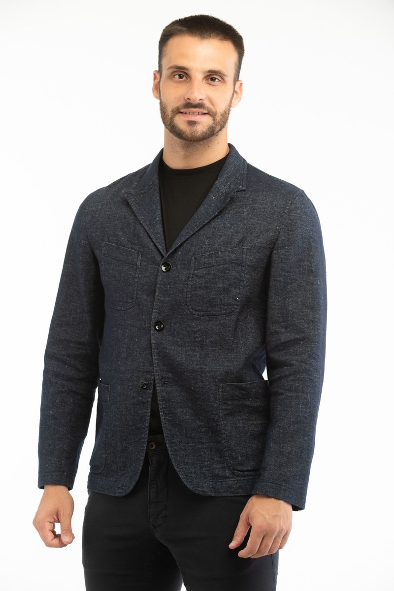 Veste slim en laine et lin - Bleu foncé - Montedoro