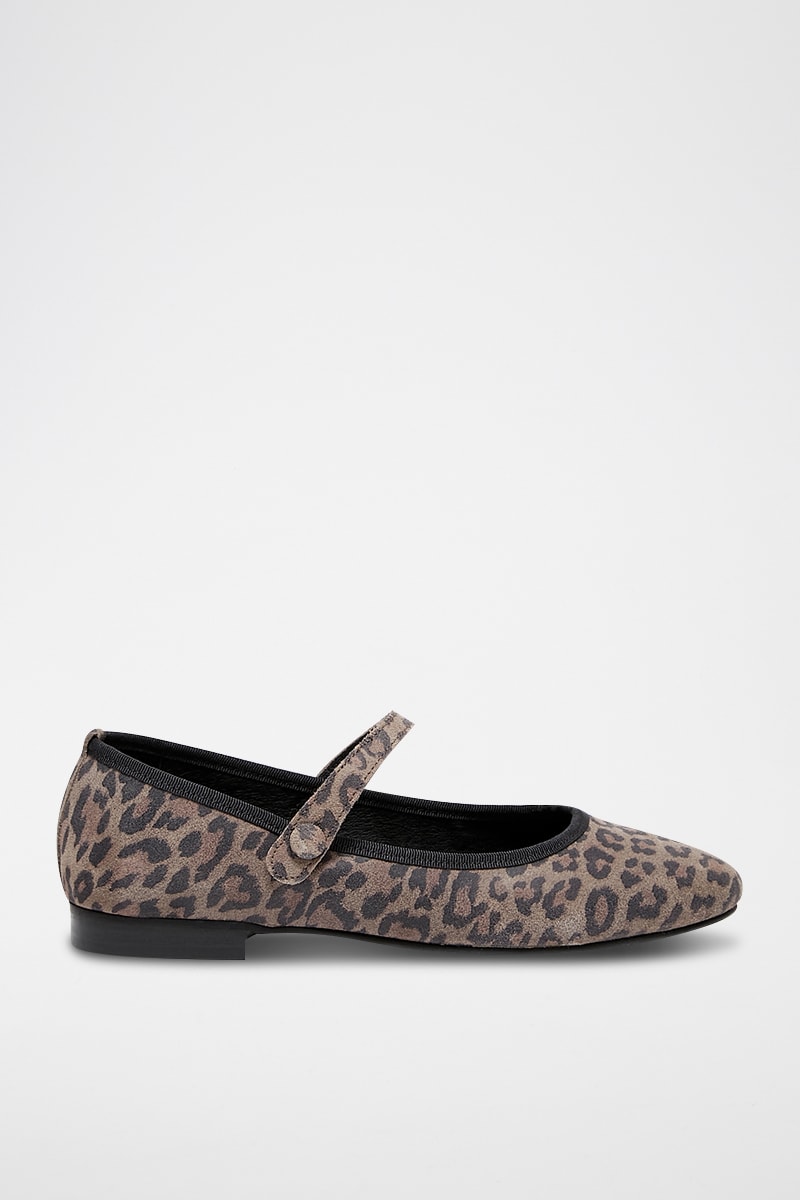 Babies en croûte de cuir Agathie - Taupe et noir