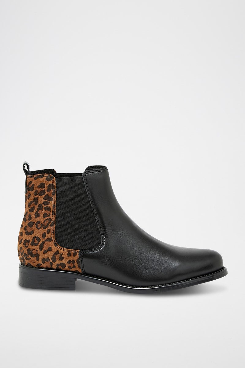 Bottines Chelsea en cuir et croûte de cuir.