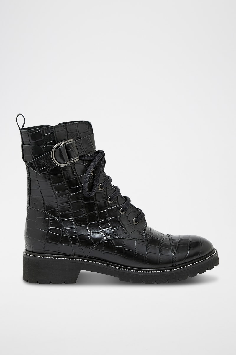 Fermeture à lacets devant et zippée sur le côté intérieur.