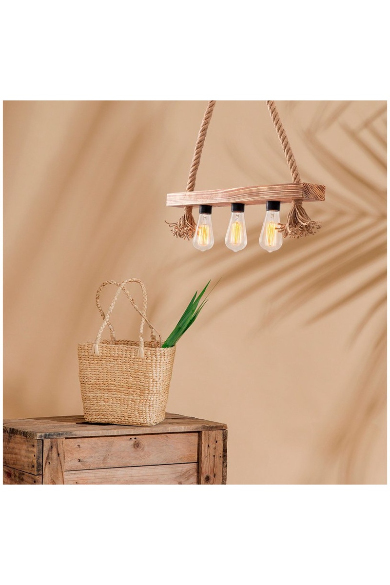 Suspension en bois Erebos - Naturel - 3 x 40 W
