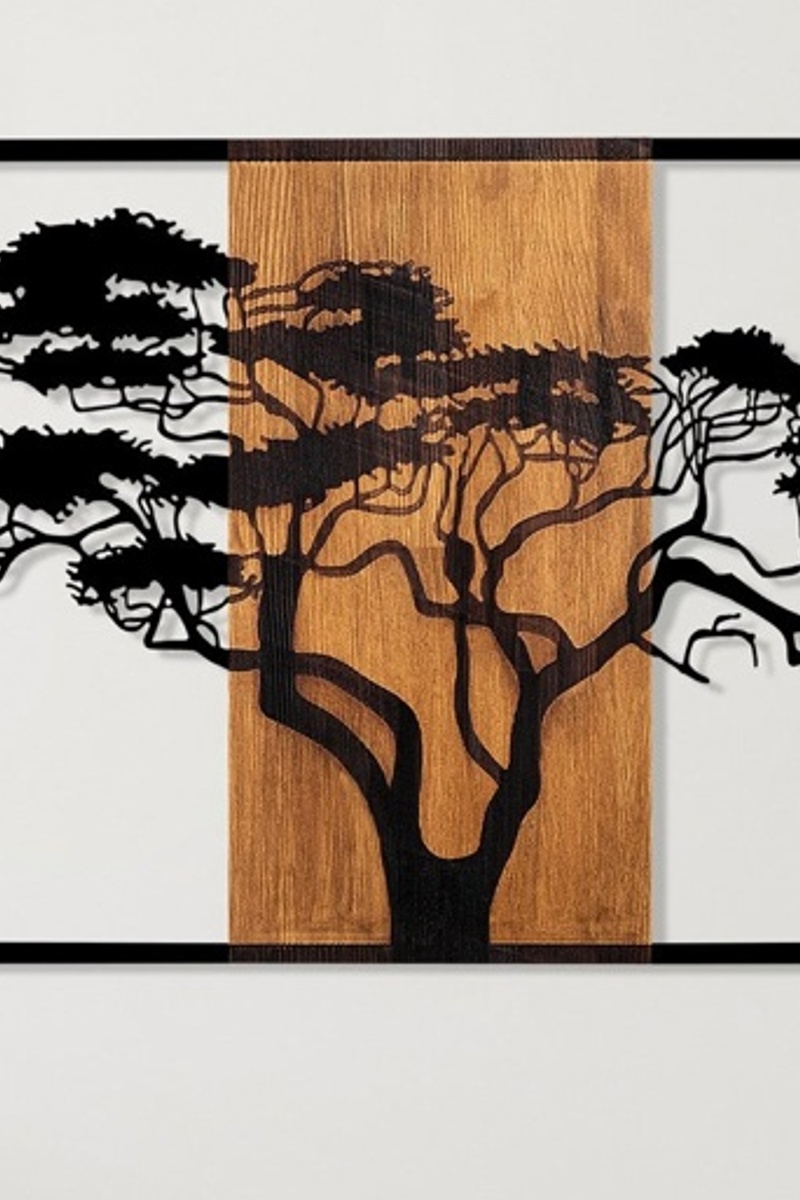 Décoration murale Acacacia - 90 x 58 cm - Naturel et noir