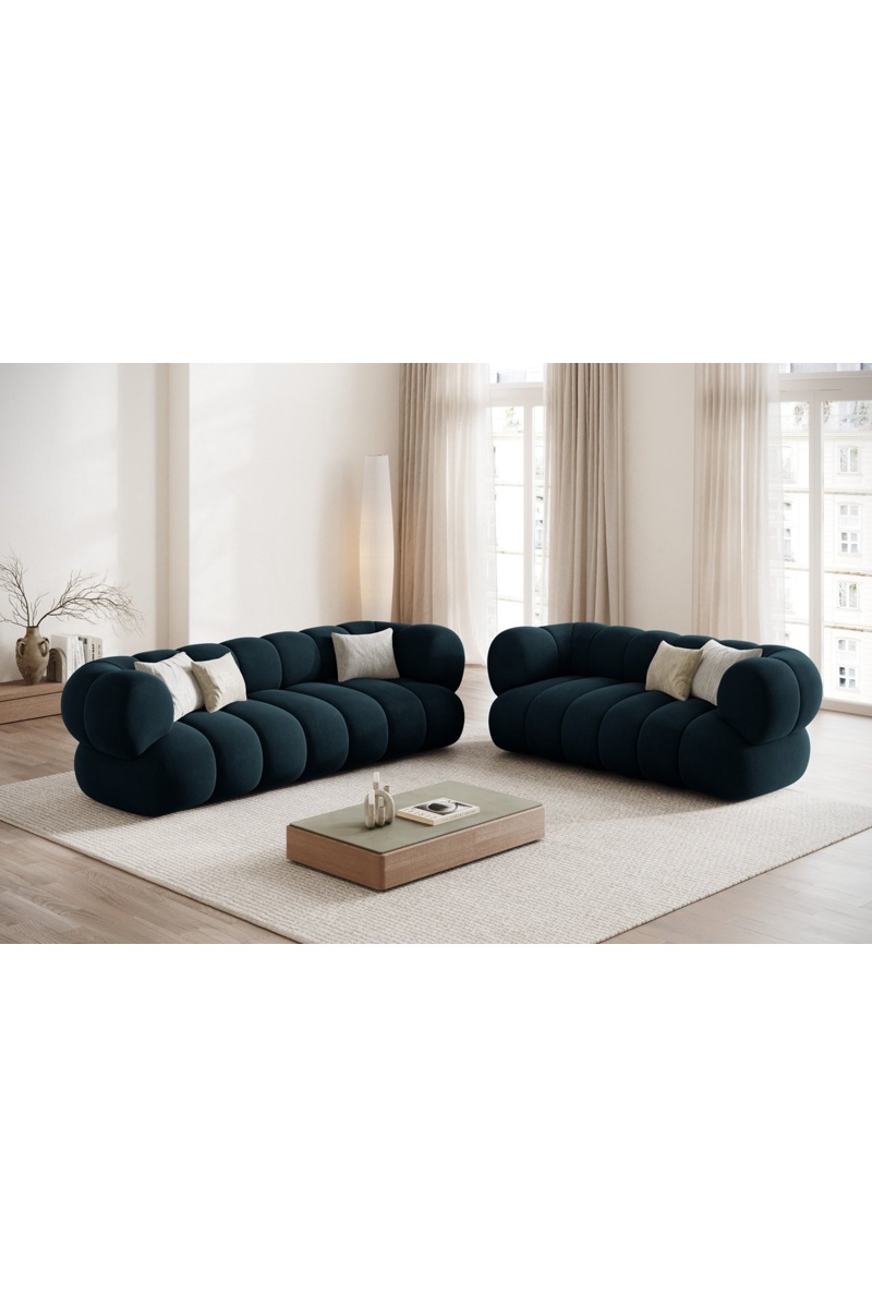 Canapé Koge - Bleu pétrole - 3 places - Toucher velours