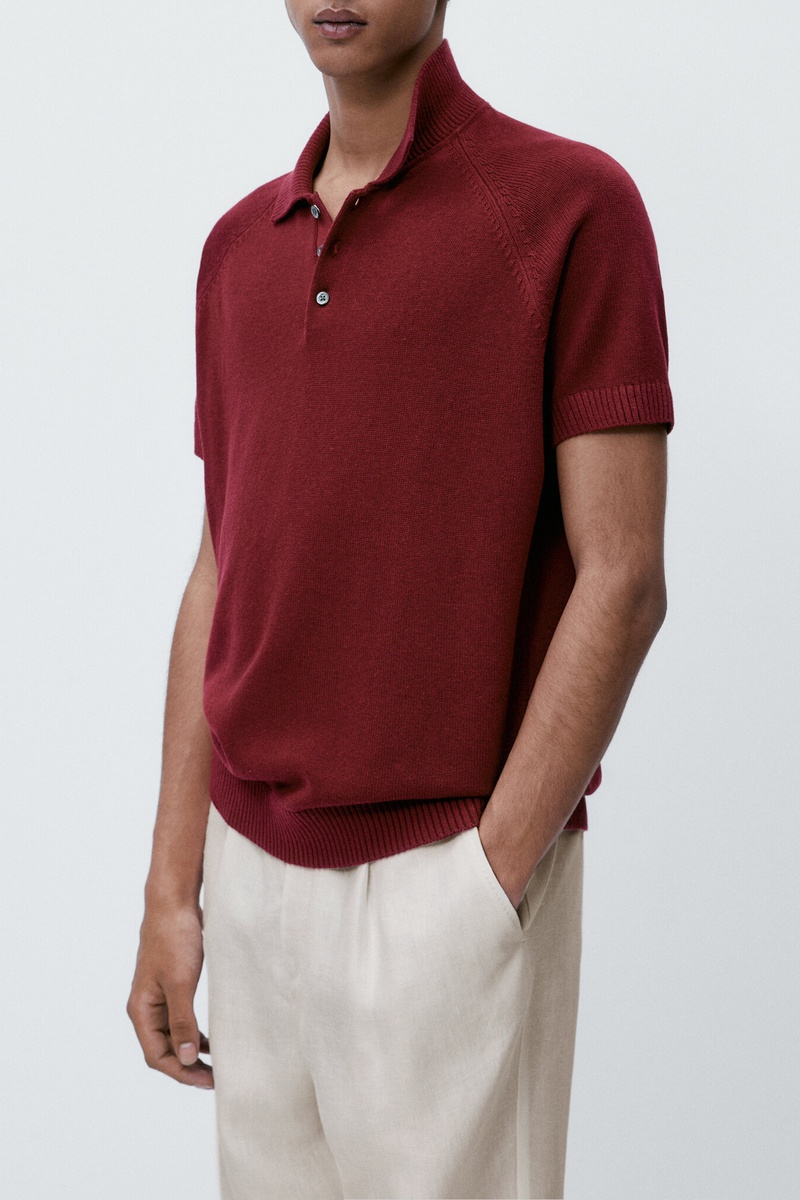 Pull polo manches courtes en coton mélangé - Bordeaux