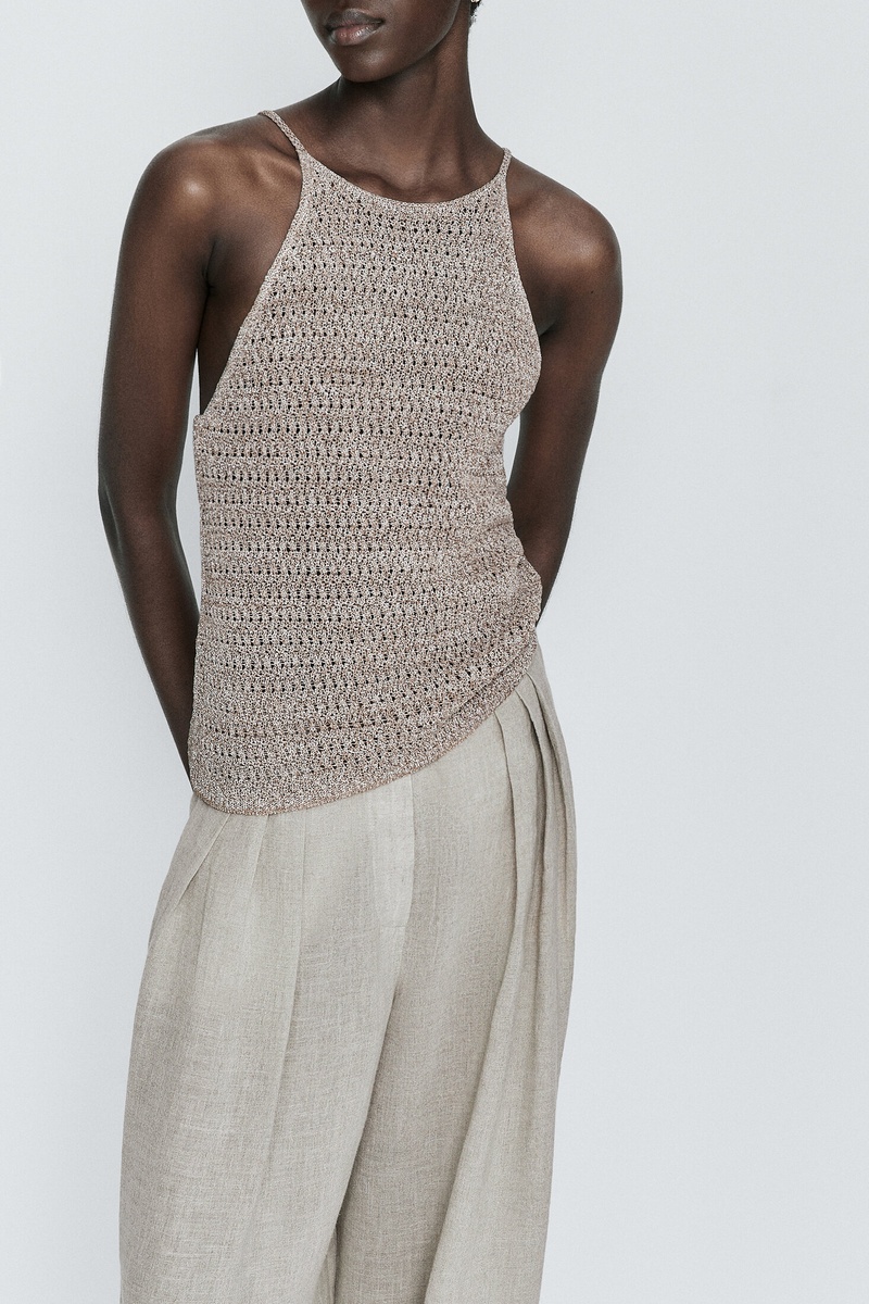 Top en maille texturée bretelles fines - Taupe