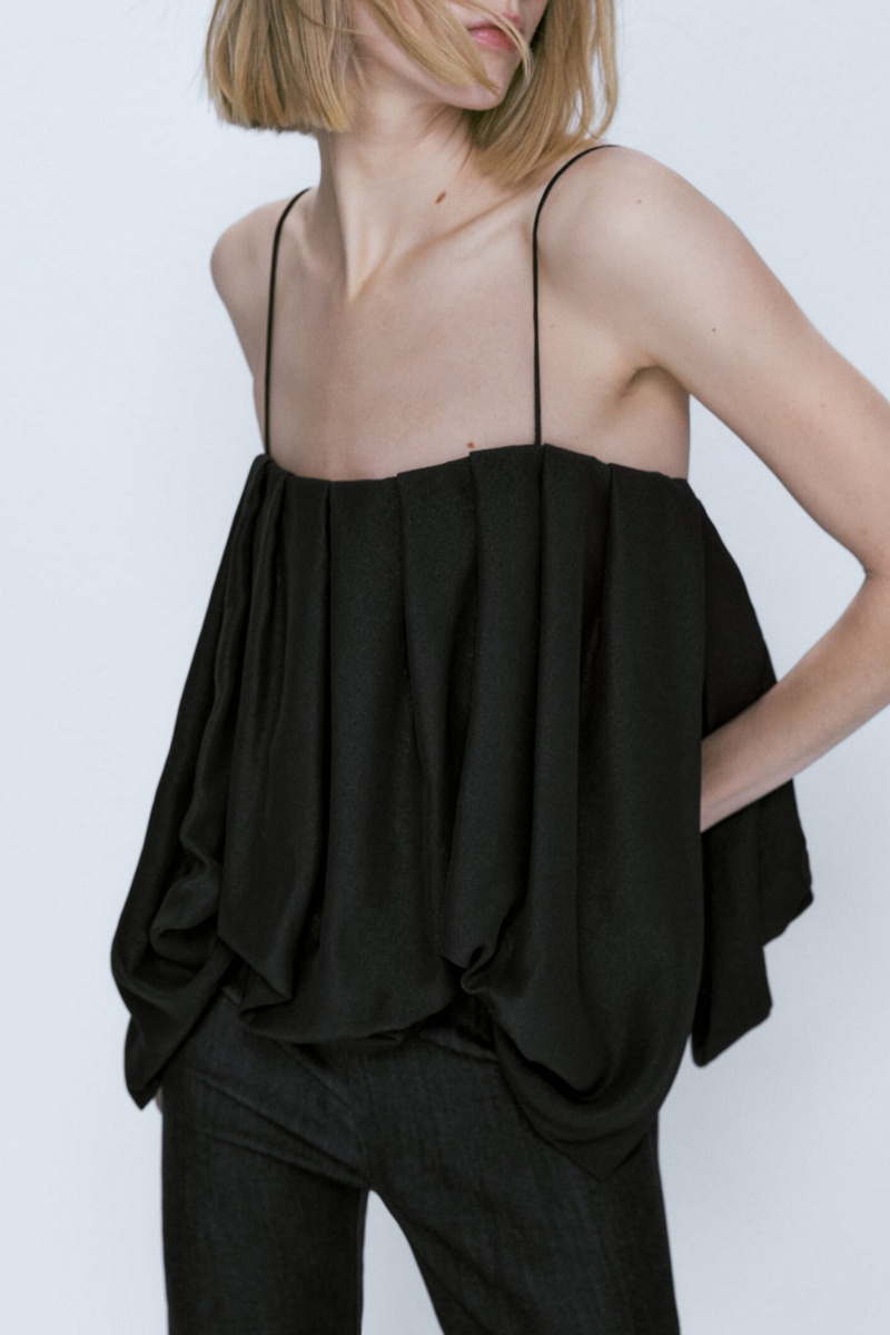 Top volume à bretelles fines - Noir