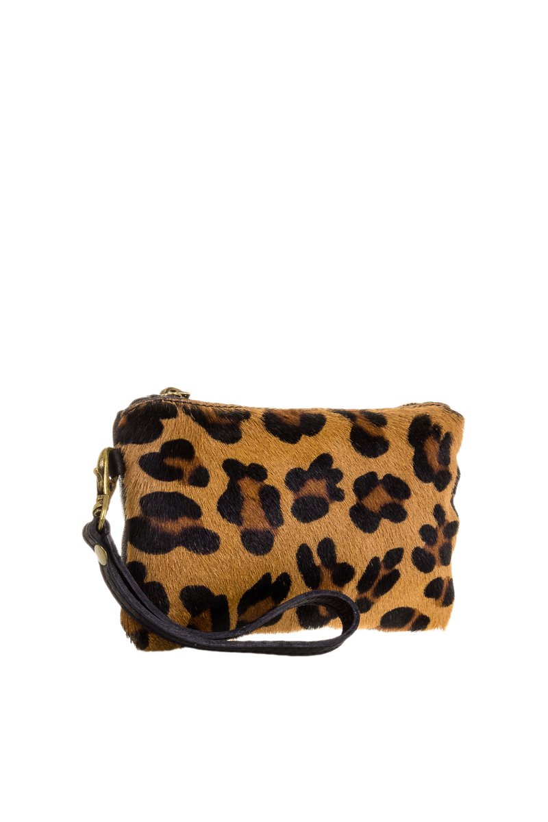 Pochette en cuir grainé et effet poulain.