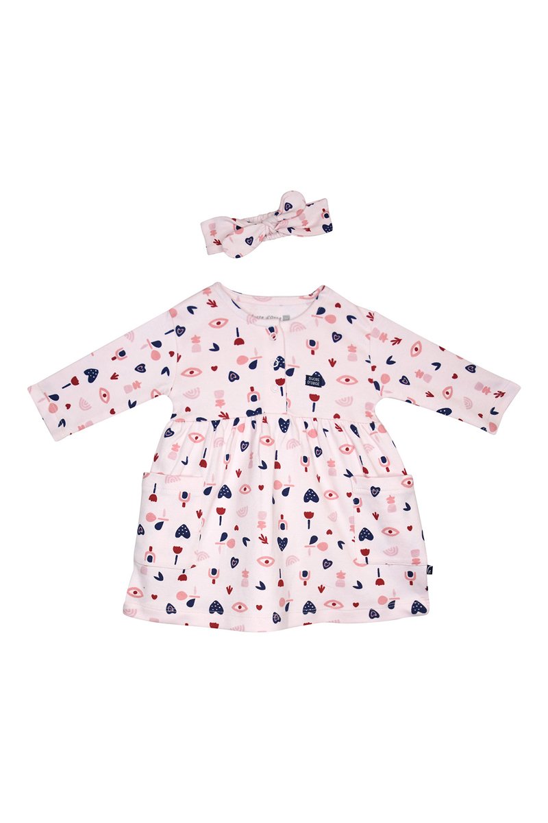 Robe et bandeau Jasmine - Bleu foncé et rose clair - Bleu et rose