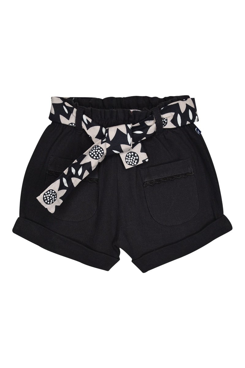 Taille élastique avec liens sous passants à nouer à motifs fleurs.