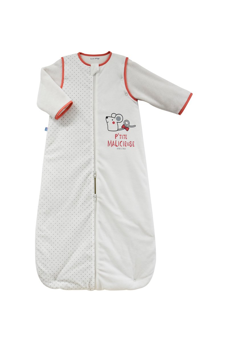 Gigoteuse à manches longues amovibles pressionnées.
