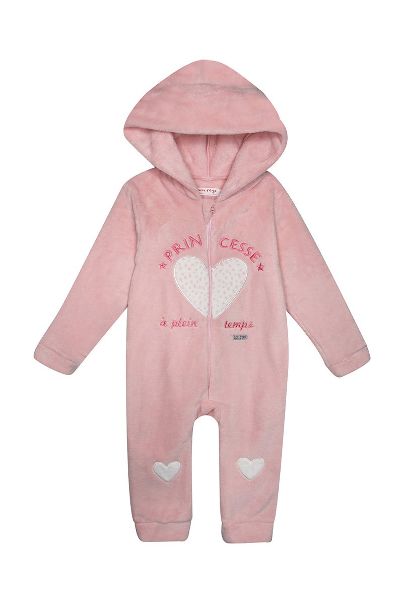 Lettrage, motifs cœurs brodés et empiècement avec logo devant.