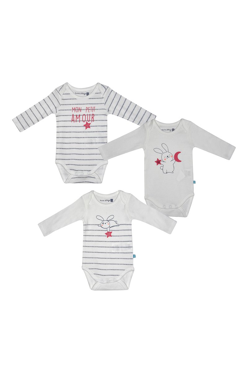 3 bodys en coton biologique - Blanc