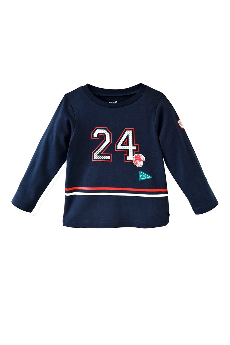 Chiffre, lettrage et motifs fantaisie et à rayures devant.