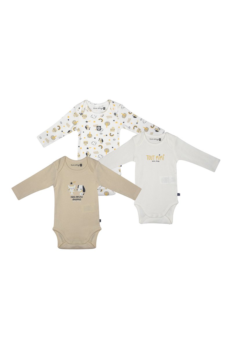 3 bodys Idan - Beige et blanc - Blanc et beige
