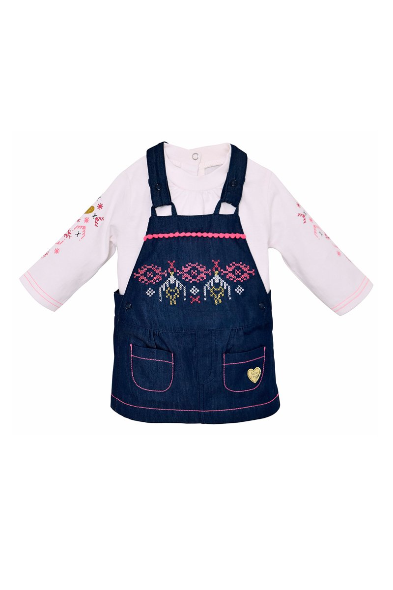 T-shirt et robe salopette en jean - Blanc et bleu
